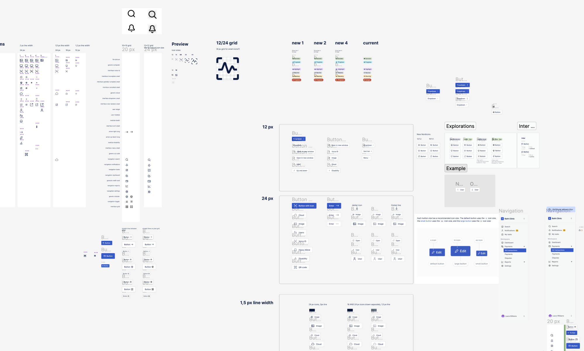 As we weren’t anymore limited by the previous icon library’s design, we first ran a few workshops to define a new icon style and sizing. We went through different options and tested them in all possible use cases. Designing for healthcare domain also meant that we had to keep in mind older low DPI screens, so not completely forgetting the rules of pixel perfect design either.